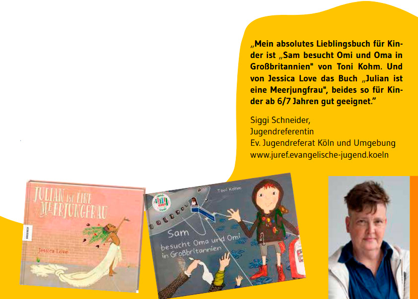 Die Kinderbuchliste zum Thema sexuelle und geschlechtliche Vielfalt der Gleichstellungsstellung LSBTIQ der Stadt Bielefeld kann hier heruntergeladen werden.